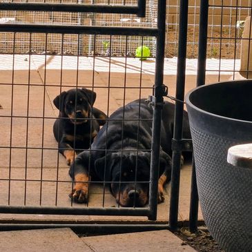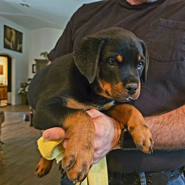 AKC registered with many champions. We diversify our bloodline to ensure the strongest genes and the healthiest dogs. Our Rottweilers range between 80-110 lbs and follow the German Standards for tails.